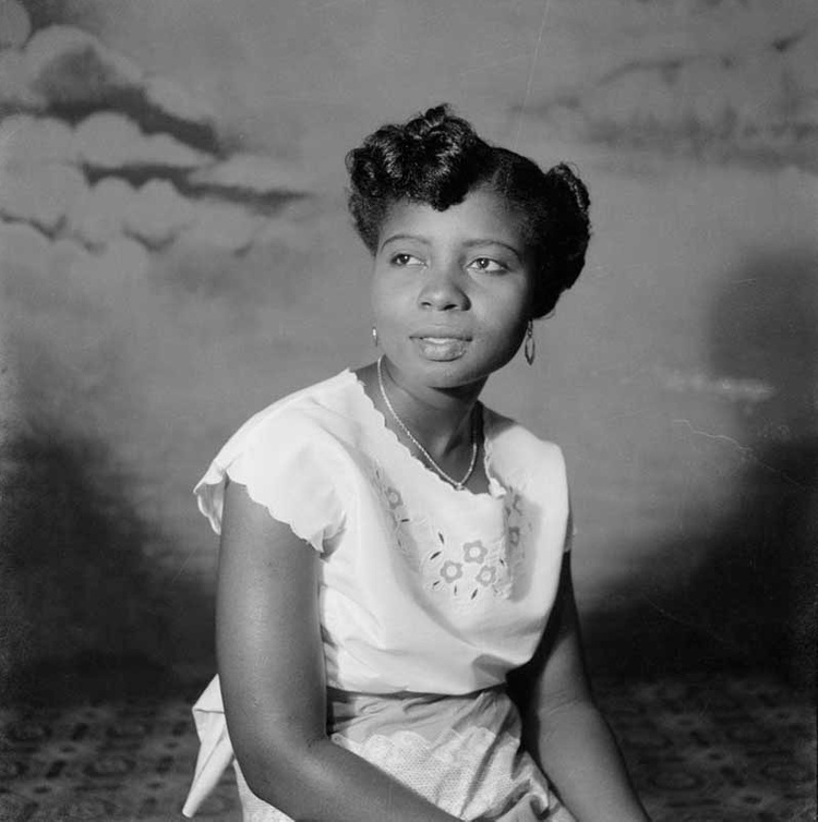 This archival image is an example of how Ghanian women embraced or replicated popular 50s hairstyles, as set via western cultural norms. The ‘cloud’ backdrop evokes not only the studio setting but this drive towards a manufactured ideal.